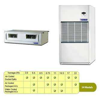 Blue Star offers its unmatched range in energy efficient airconditioning systems to suit your requirements perfectly, be it an office, a showroom, a restobar, an entertainment centre or any other commercial space. In addition, Blue Star offers you a choice of Indoor Unit configurations â€" Floor Mounted or Ceiling Suspended. Packaged ACs come in a wide range of capacities and models to choose from. An optimum selection of units offer you tangible benefits in terns of space saving, redundancy, flexibility, power saving and even cost saving on related accessories such as transformers, switch-gears, generators etc.
